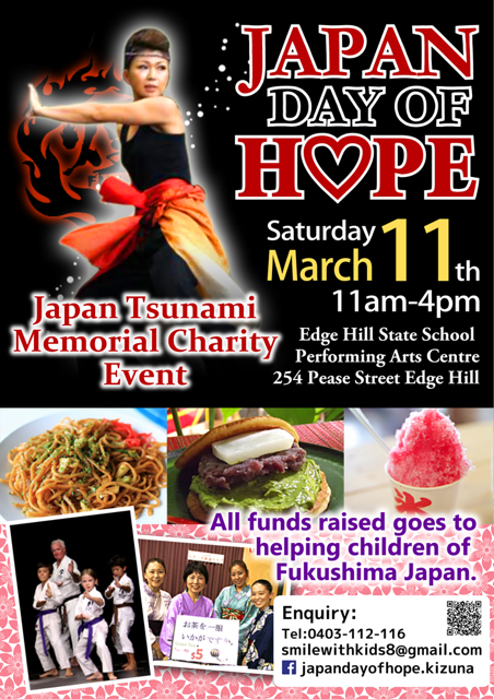 Japan Day Of Hope 2017 イベント詳細 イベント日時 2017年3月11日~2017年3月11日 11:00-16:00 参加費 無料 イベント会場 Edge Hill State School イベント開場地図